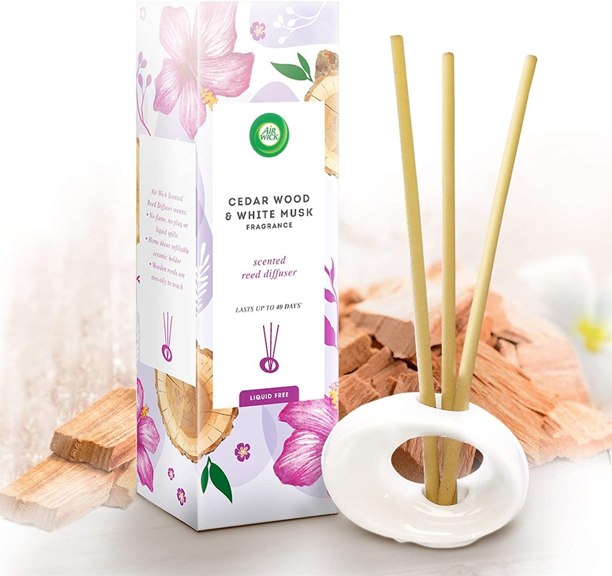 Air Wick Luftfrisker - Cedertræ & Hvid Muskat - Duftpinde - 40 dage