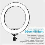 Cirkellampen har en ydre dirameter på 26 cm og en indre diameter på 16 cm.
