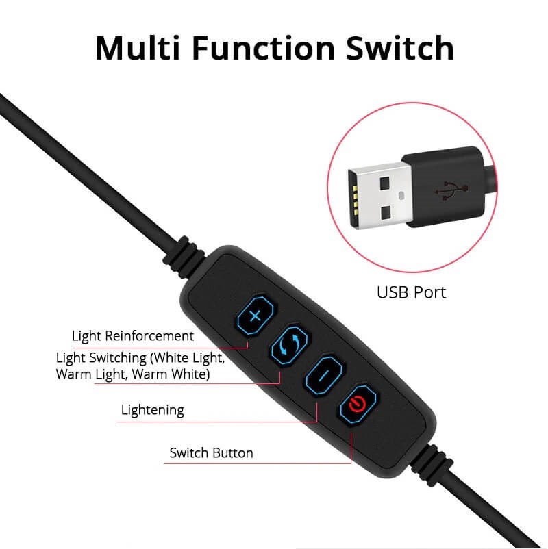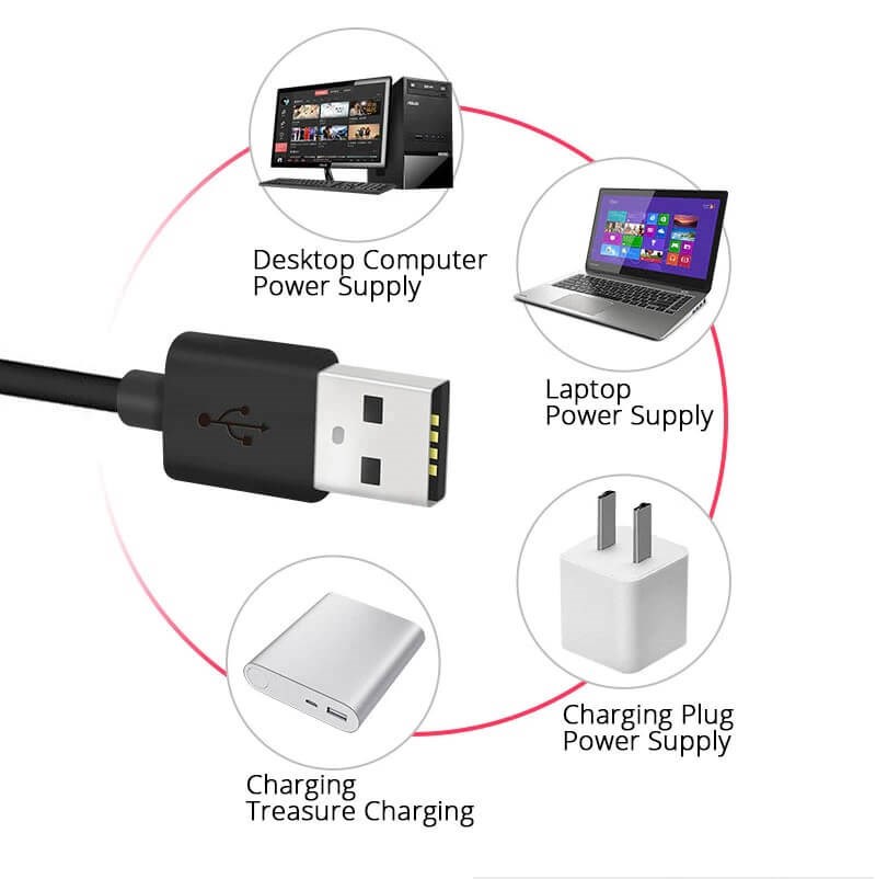 Lampen tilsluttes USB for strømforsyning.fra laptop, PC eller oplader.