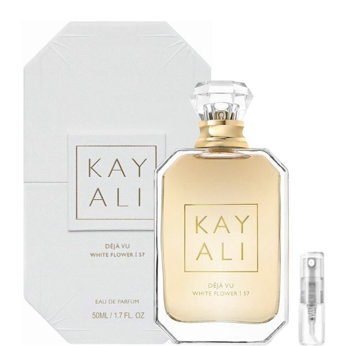 Déjà Vu White Flower 57 van Kayali Fragrances is een amber bloemige geur voor vrouwen en mannen. Déjà Vu White Flower 57 werd gelanceerd in 2020. De neus achter deze geur is Gabriela Chelariu. Topnoten zijn Nectarine, Gardenia en Peer; hartnoten zijn Tuberoos, Indiase Jasmijn en Oranjebloesem; basisnoten zijn Tahitiaanse Vanille, Patchouli, Kasjmierhout en Sandelhout.