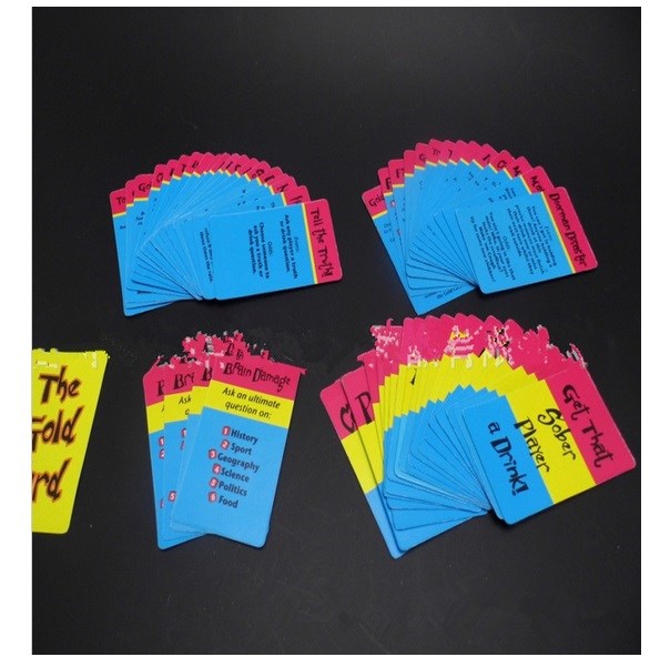 Kortene er opdelt i kategorier, og alle kan være med. Et super sjovt og udfordrende spil, hvor I kan lave jeres egne regler. Kortene er med engelsk tekst.