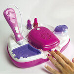 Professionel neglekunst. Et moderne neglestudie for spirende neglekunstnere med neglelakmaskine, glitter og tørretumbler.