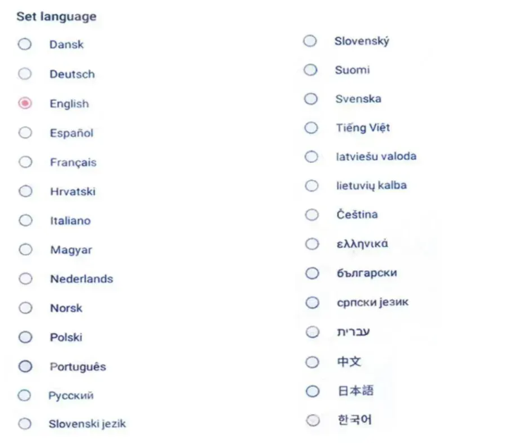 Tilgængelige interface sprog: Europæiske og engelsk herunder (dansk også)