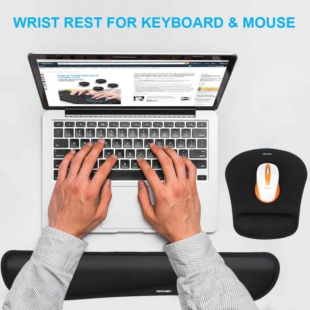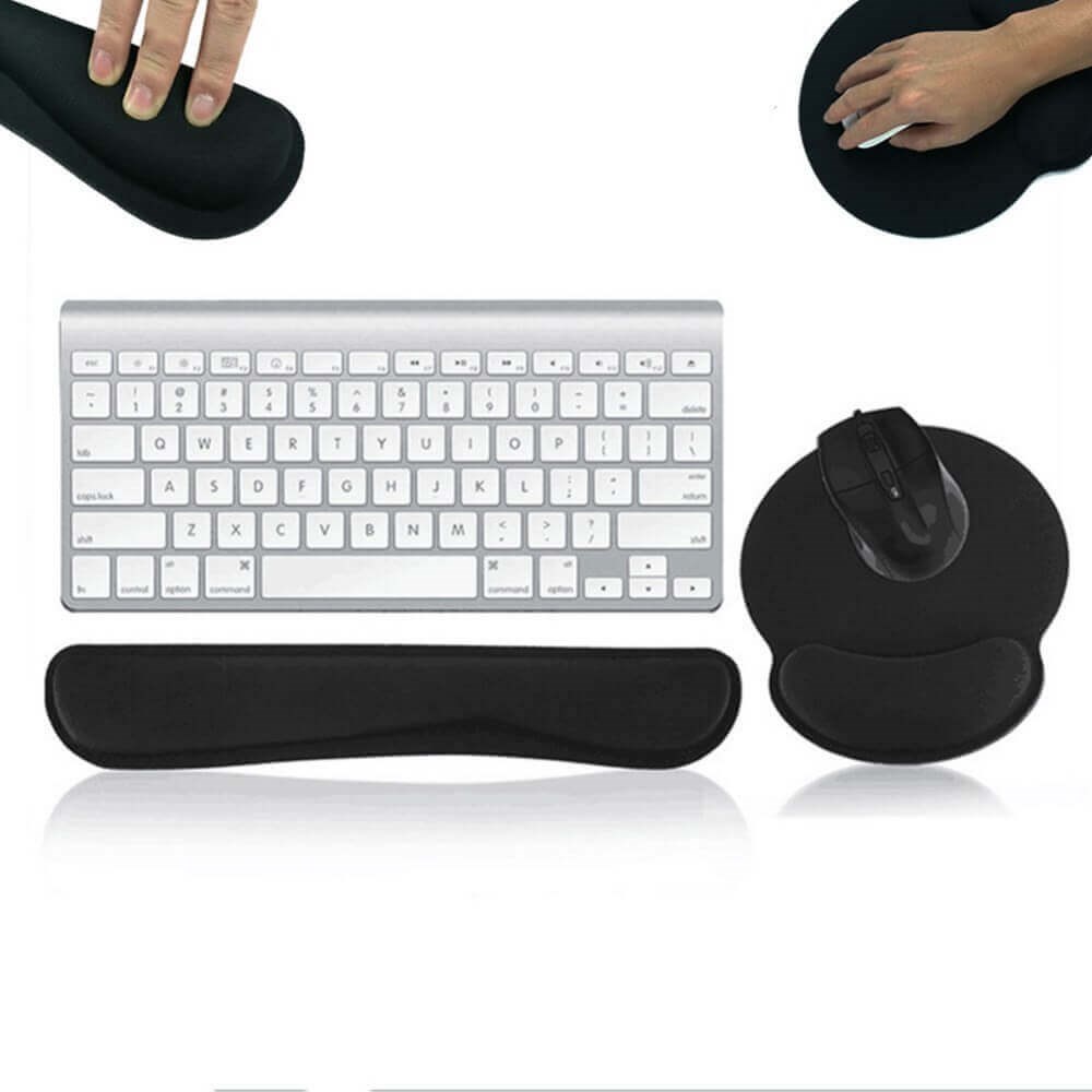 Her får du ergonomisk udformet håndledsstøtte til betjening af keyboard samt musemåtte med håndledsstøtte i et samlet sæt.
