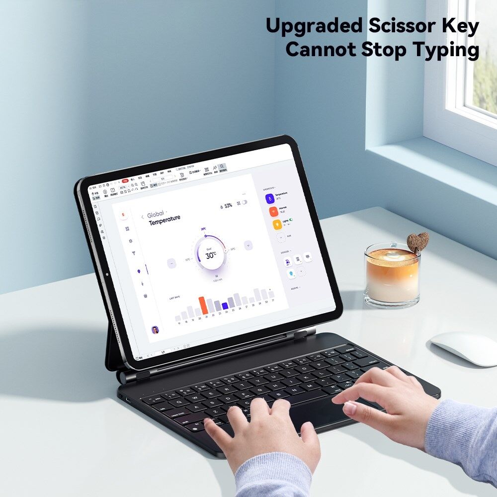 Elektronik Computer / Bærbar Tilbehør Bærbar Tilbehør Mus & Tastatur ESSAGER til Pro 12,9-tommer Magic Touchpad Bluetooth-tastatur Magnetisk Stand Beskyttelsesetui pris11.399,00 DKKIkke på lager Send en e-mail, når varen er tilbage på lager (Leveringstid - 1-2 hverdage) Antal Tilføj til Ønskeskyen Vi sender alle ugens 7-dage med DAO. Bestil inden kl 15:00 og modtag din ordre i morgen. Læs mere herGælder kun lagervare og ved levering med DAO365 Produktinfo Varenummer. TVC-661500707B ESSAGER til iPad Pro 12,9-tommer Magic Touchpad Bluetooth-tastatur Magnetisk Stand Beskyttelsesetui - Hvid Bluetooth tastatur magnetisk tablet Stand cover, understøtter vandret og lodret skærm, støttevinklen er justerbar Indbygget Bluetooth 5.2-chip, intelligent og stabil, kontinuerlig forbindelse, lav forsinkelse, lavt strømforbrug Med Smart touchpad, AG touch glat dækplade, global multi-gesture touch, Smart og stabil berøringsoplevelse Tastaturbaggrundsbelysningsdesign, 7 RGB-farver og lysstyrken er justerbar, skift fra konstant lys og vejrtrækningslys Metal saks nøglestruktur design, behagelig og rolig skrivefølelse Intelligent søvn, tryk for at vågne op med det samme; magnetisk opladning, øjeblikkelig strømforsyning Den samlede overflade bruger anti-fingeraftryk UV og gummioliebehandling, med god berøringsfølelse, Scratch og oliebestandighed Specifikation: Mærke: ESSAGER Tastaturmateriale: ABS keycap + metal bundplade Touchpad: Ja Tilslutningsmetode: Bluetooth 5.2 Trådløs afstand: 10m Standbystrøm: mindre end 0,5mA Dvalestrøm: mindre end 30μA Arbejdsspænding: 3,1~5,0V Opladningsgrænseflade: Type-C Ladestrøm: 260mA Batterikapacitet: 500mAh Hall switch: ja, support Om Coolpriser.dk Fri fragt ved køb over 400,00 DKK (Med DAO) 1-2-dags levering (gælder kun varer på eget lager) Dansk virksomhed med dansk adresse Billige fragt priser Anbefalede produkterBedømmelse for ESSAGER til Pro 12,9-tommer Magic Touchpad Bluetooth-tastatur Magnetisk Stand BeskyttelsesetuiLog ind for at bedømme produktet 0 anmeldelser Produktet er endnu ikke anmeldt. Klik her for at skrive en anmeldelse. Parfume refills 0 DKKDKKDKKDKKDKKEURGBPNOKSEK