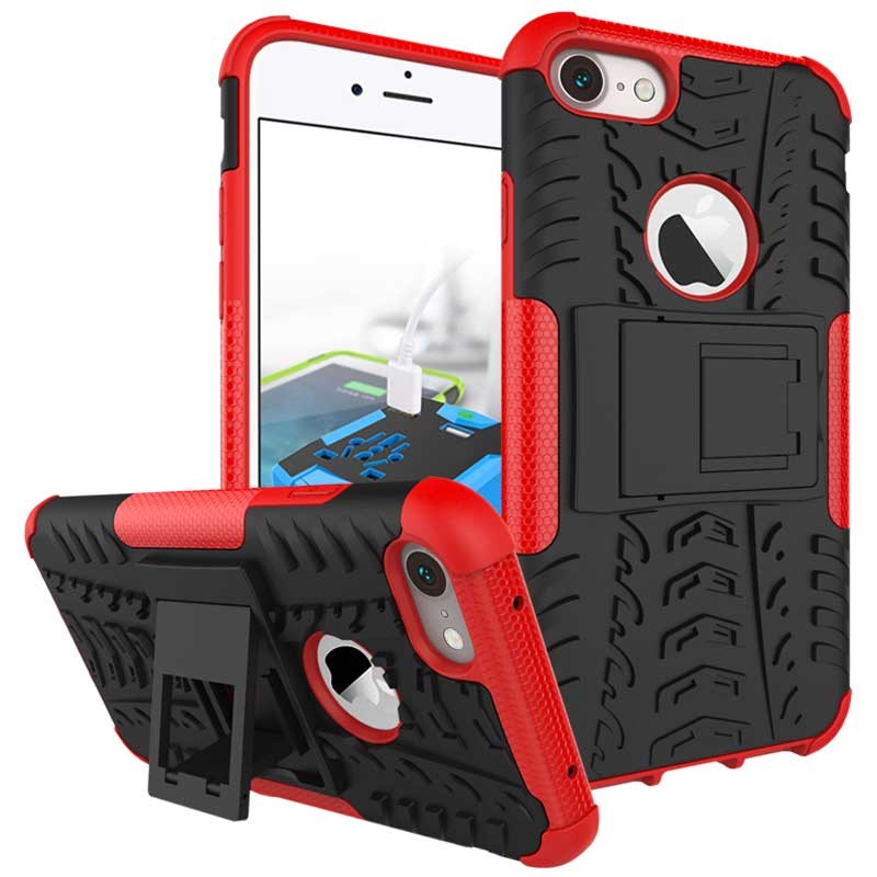 Fashion Fit Cover i Silikone og Plast med Standerfunktion til iPhone 7/ iPhone 8 - Rød