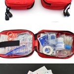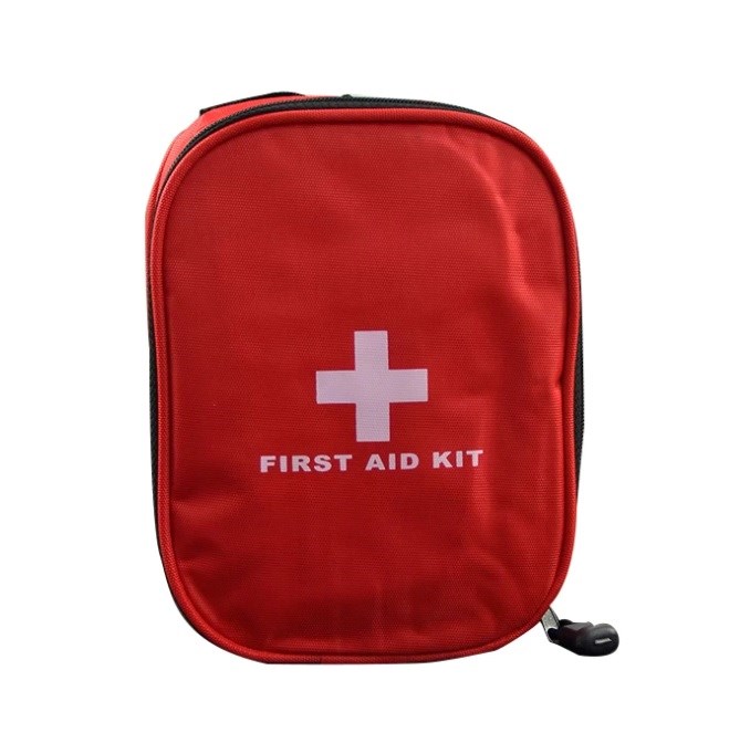 Sættet kommer i praktisk opbevaringstaske, der naturligvis er mærket med et hvidt kors samt teksten "First Aid", så den er nem at finde, når behovet er der.