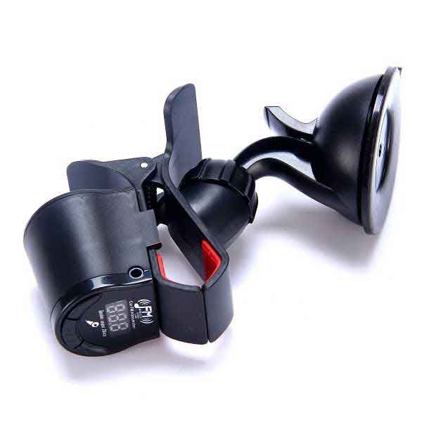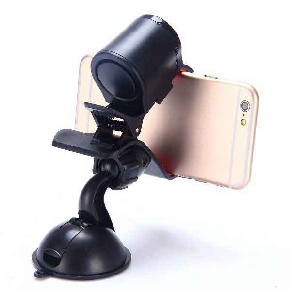 360 graders rotation multifunktions universal sugekop håndfri telefon bil mount + Lydforstærker + FM Transmitter