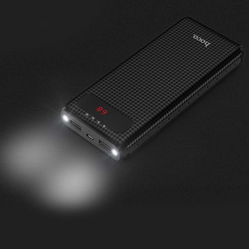 HOCO Powerbank byder på et stilfuldt kvalitets design med digitalt LCD-display og en stor kapacitet på 20000mAh. Powerbanken har to USB-udgange til opladning af både din smartphone og din tablet samtidigt. Med dobbelt LED-lys, som fungere som en lommelygte, har du lys om natten.