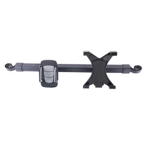 Unikt 2 i 1 design bestående af en monteringstang, som nemt sættes fast mellem forsædernes nakkestøtter til både at holde en Smartphone og en Tablet.