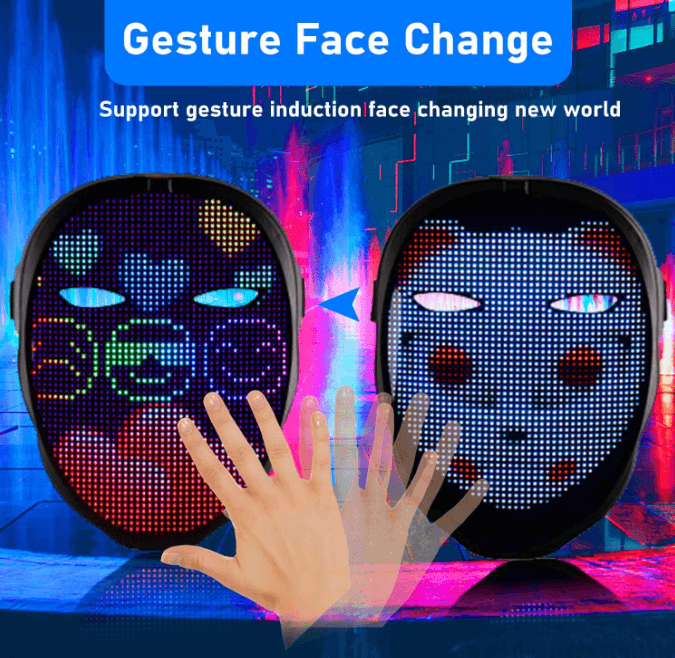 Den understøtter gestusregistrering, så du kan ændre forskellige mønstre/billeder ved at svinge hånden hen over masken.
