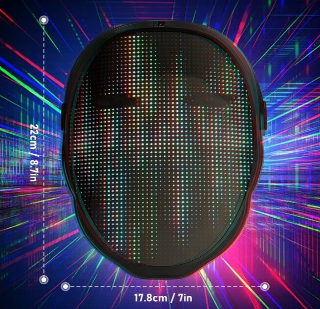 Skinnende Maske har 45 dynamiske displaytilstande og 70 statiske displaybilleder. LED-masken kan indstilles til enkeltfarve, blink, gradient, glidende og flerfarvet. Efter tilslutning til LED-masken via Bluetooth-kompatibilitet kan den programmeres igennem appen.