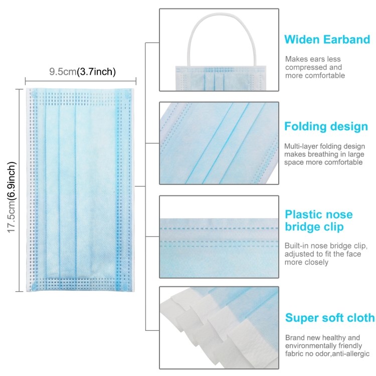 Mundbind - Ansigtsmaske - 3-lags Beskyttelse - 50 stk