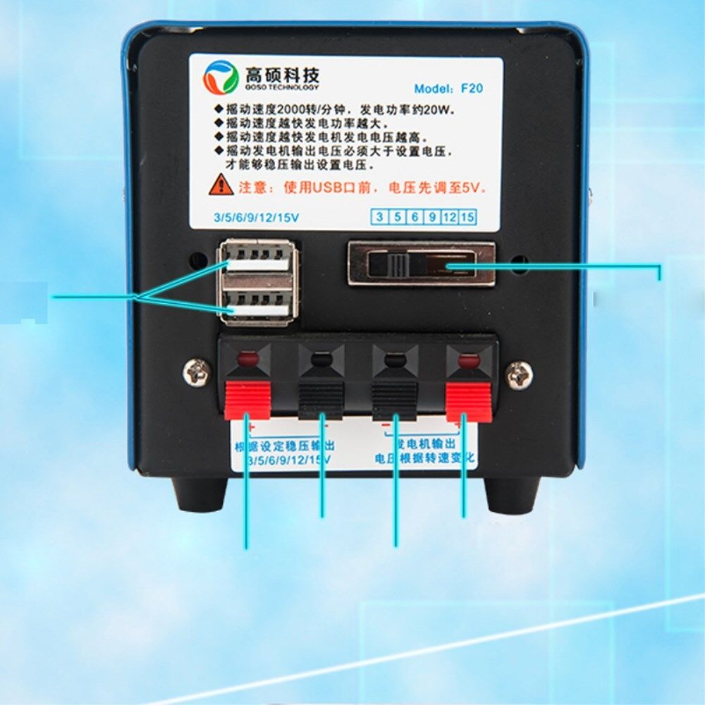 Generatoren er praktisk og velegnet til brug i marken, feltoperationer, ekskursioner, redningsoperationer, naturkatastrofer, overlevelsestræning, nødkommunikation, ved langvarig strømmangel osv.