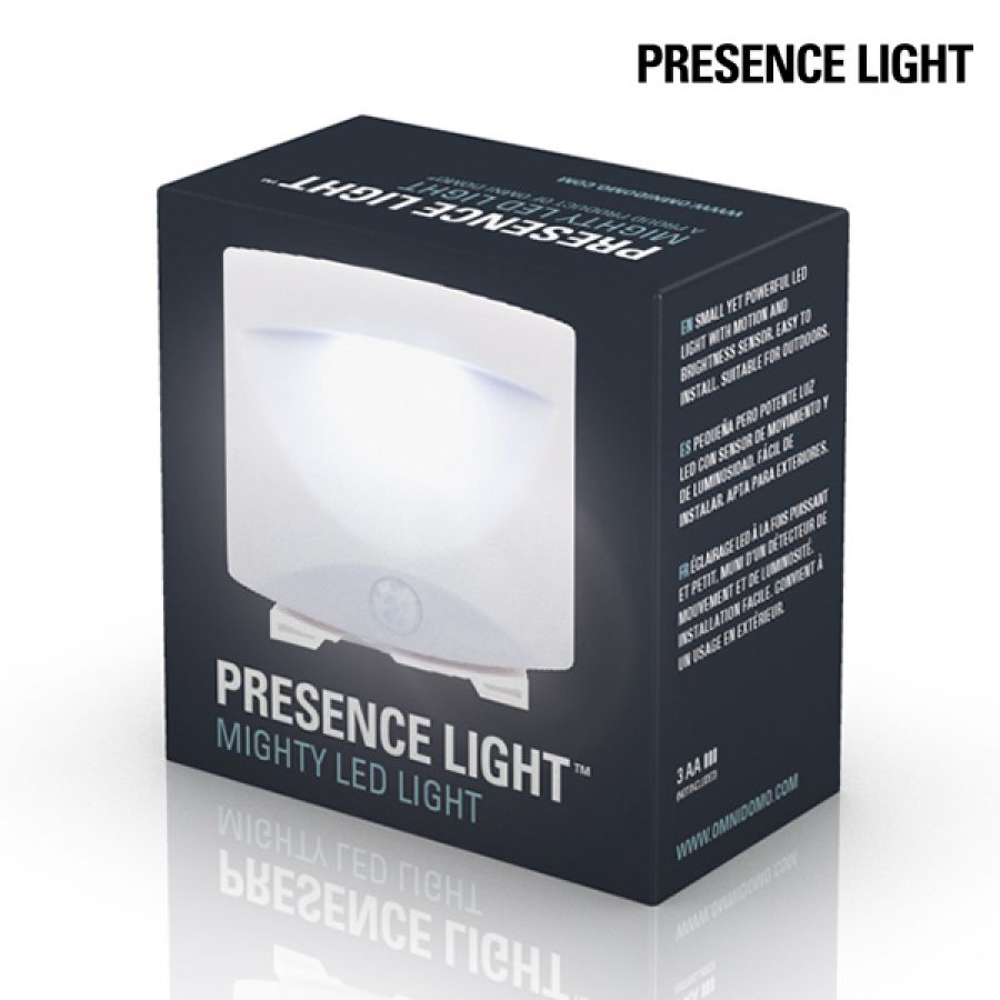 Hvis du vil lyse de mørke hjørner i dit hjem op med en enkelt bevægelse, så er Presence Light LED-lys med bevægelsessensor den perfekte løsning. Fra nu af behøver du ikke gå op og ned ad dårligt oplyste trapper. Dette fantastiske LED-lys registrer din tilstedeværelse og tændes automatisk i ca. 30 sekunder. Anvender batteri (3 x AA, medfølger ikke). Kan anvendes udenfor og indenfor. Maks. rækkevidde: ca. 1,5 cm. Ca. mål: 7,5 x 7 x 2,5 cm.