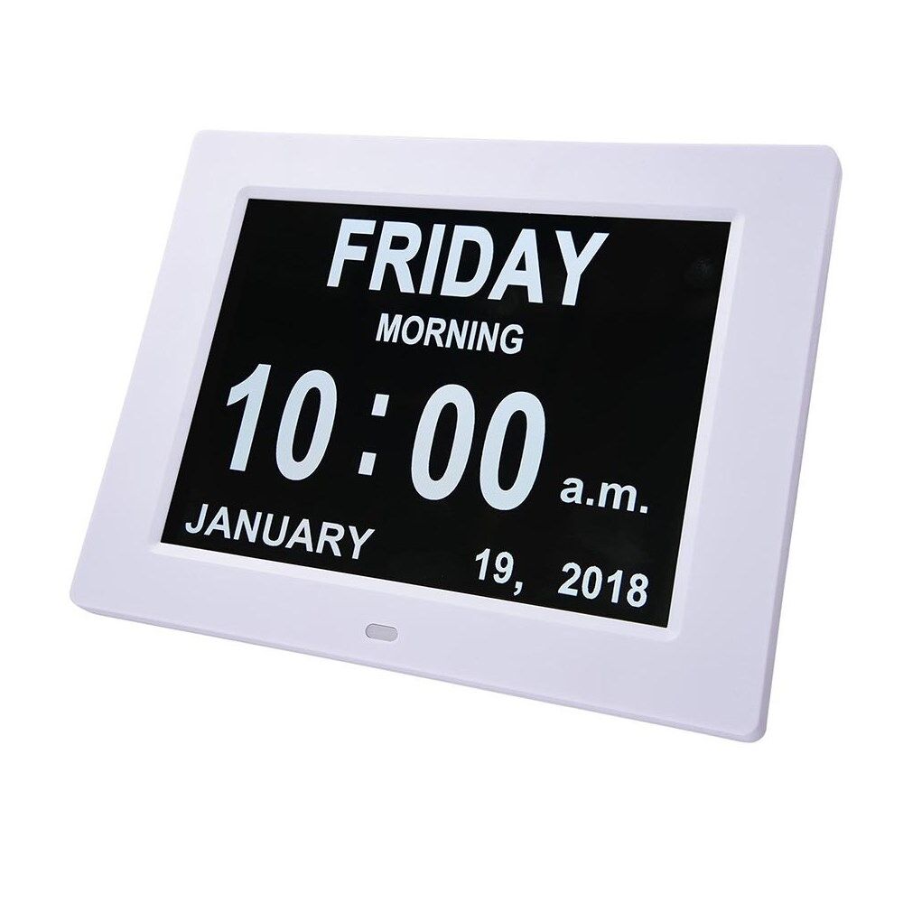 Dette unikke 8-tommer højopløselige digitale vækkeur kan tydeligt vise tid, ugedag, alle dage i en uge, måned og ugedato uden forvirrende forkortelser.