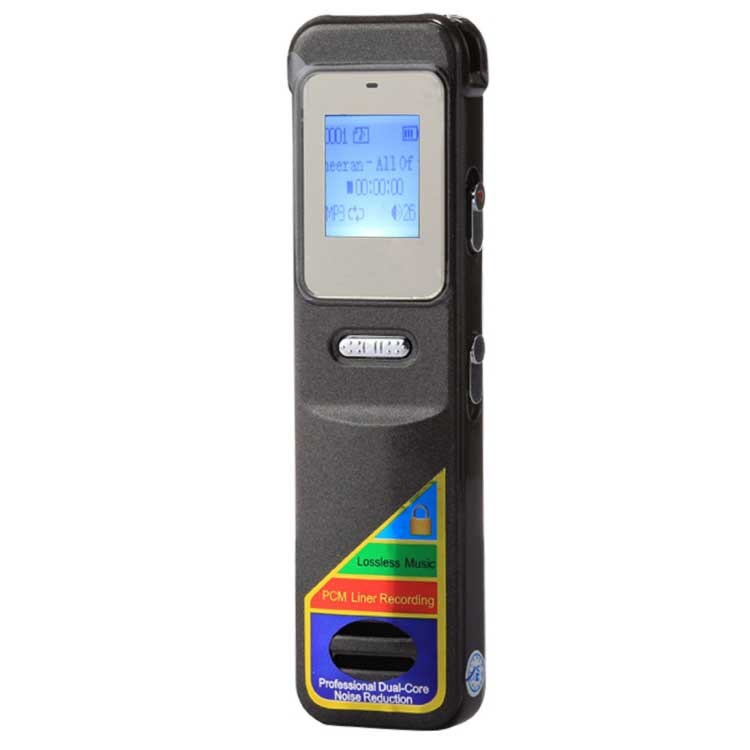 Digital Diktafon med 8 GB hukommelse, LCD-Display, højttaler og som understøtter SD-Kort.