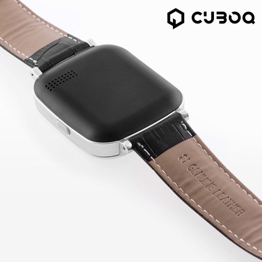 CuboQ uret er i et pænt stilrent design, med læderrem og er i stand til: