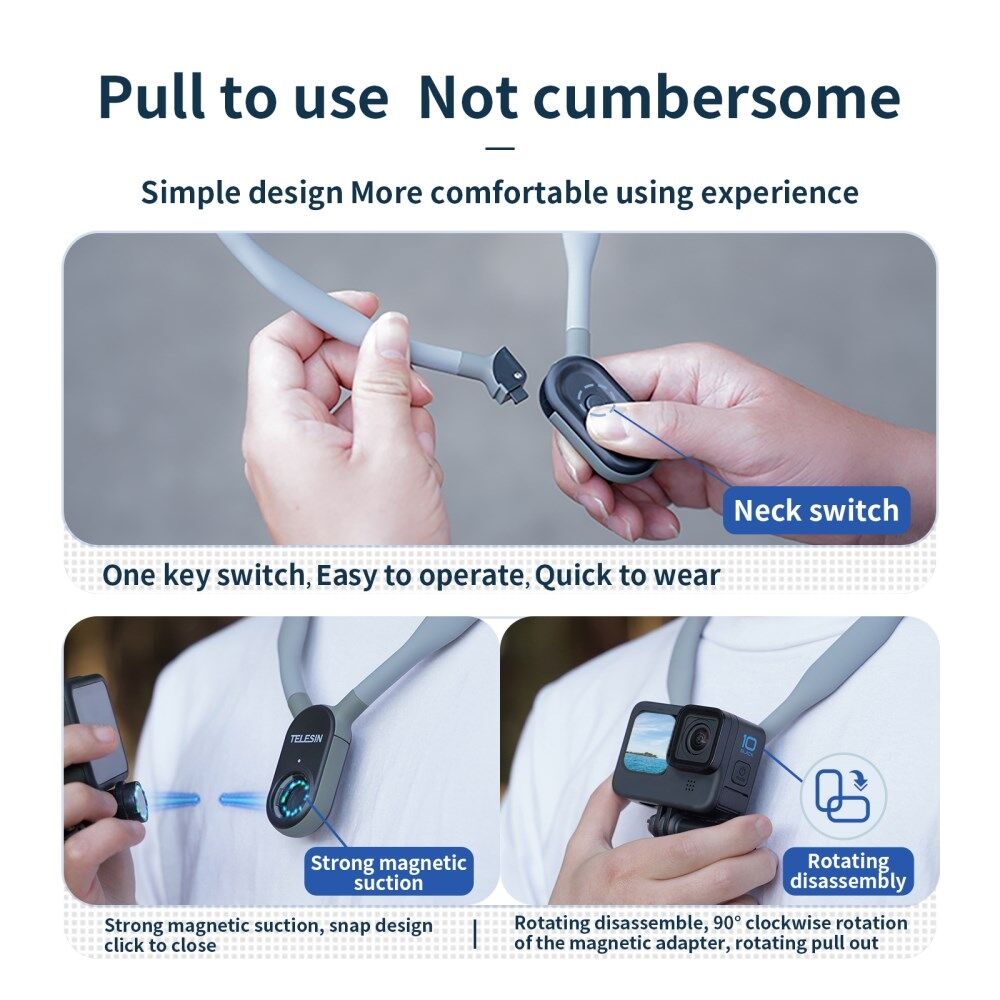 TELESIN TE-HNB-001 Actionkamera - Magnetisk Halsmontering til GoPro Hero 10 9 8 7 Insta360 GO 2