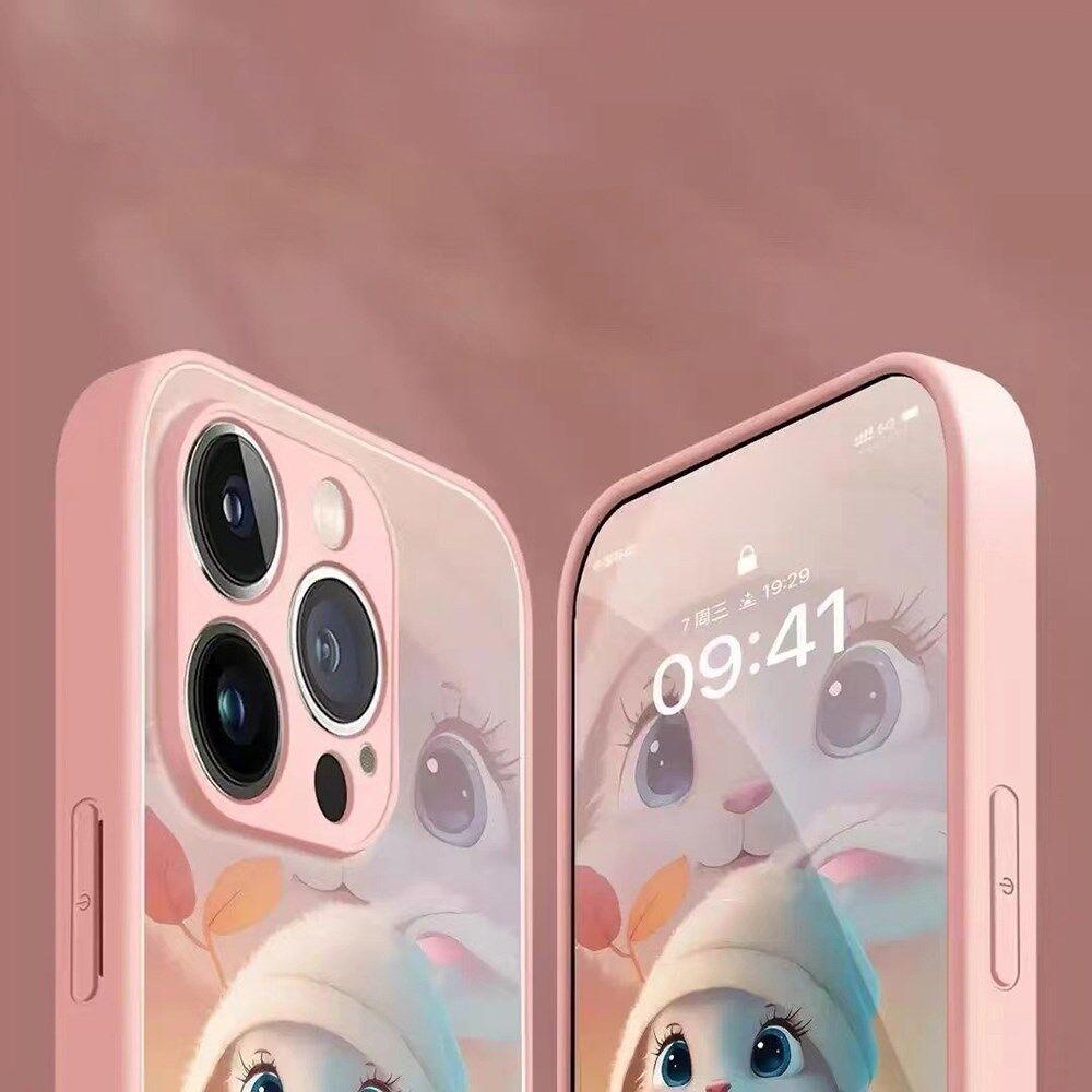 Til 12 Pro Max 6,7 tommer kanin og blade mønster Drop-sikker telefoncover Hærdet glas + TPU telefon bagcover