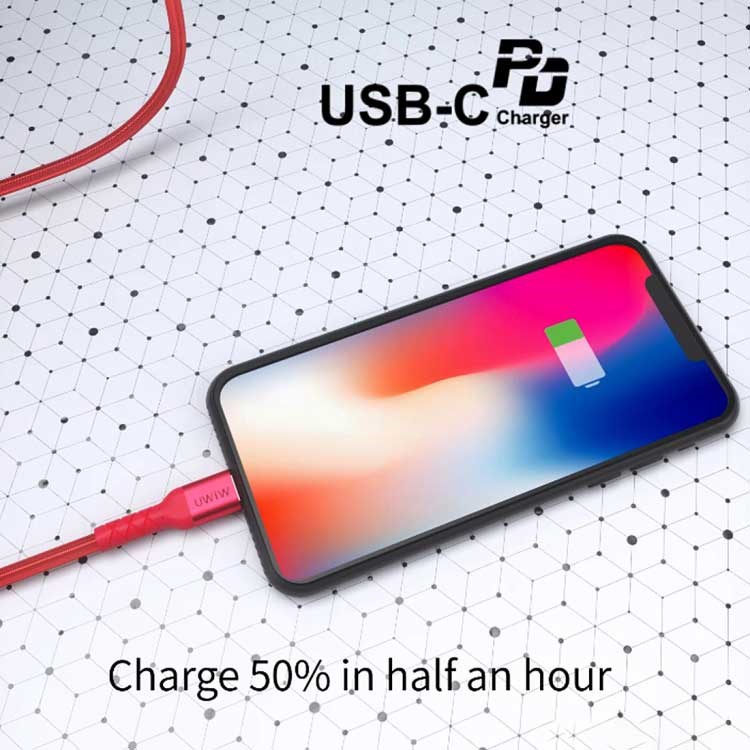 WIWU WP101 2.4A USB-C / Type-C to 8 Pin Data Ladekabel - 1 m - Rød